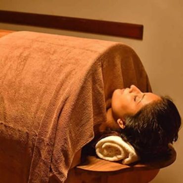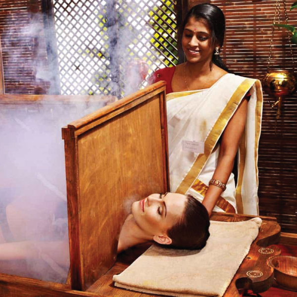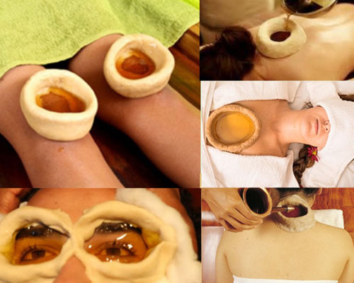 Warm oil massage followed by gentle oil pouring on forehead — relieves stress & rejuvenates nervous system.